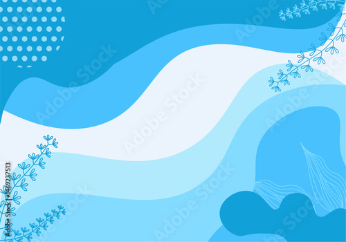 © Awlani, Naklejka premium Vector Background Template Floral Blue Leaves Leaf Flower Spring and Summer Hand drawn