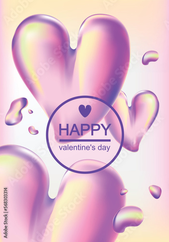 Fototapeta premium Vector background to Valentine's Day with hearts. Beauty backdrop with pink liquid blobs background.