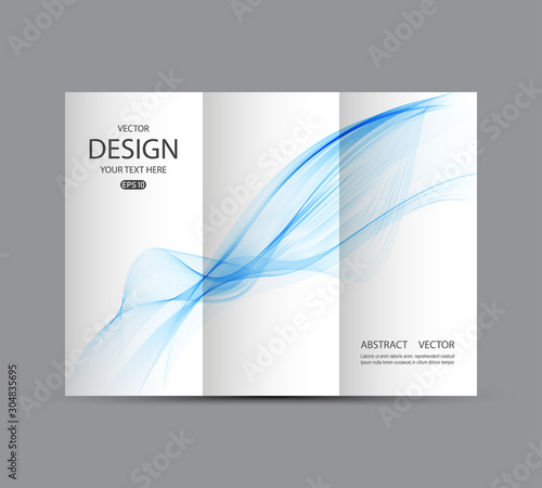 Fototapeta premium Vector background with blue wave. Booklet template of 3 pages