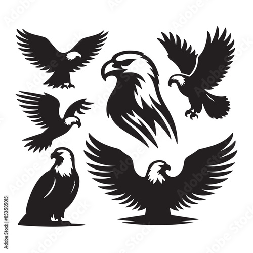 © MD Robiul Islam, Fototapeta premium vector Bald Eagle set silhouette black in white background