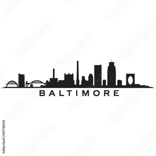 Naklejka premium Vector Baltimore skyline. Travel Baltimore famous landmarks. Business and tourism concept for presentation, banner, website. Vector black silhouette. with white background