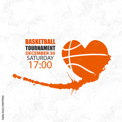 Fototapeta premium Vector basketball, grunge, splashes, hand drawing, textures. Love, flying heart, spray, element for sports design.