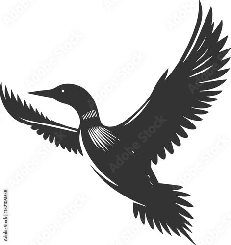 © MostAklima, Fototapeta premium Vector bird loon wildlife animal drawing silhouette
