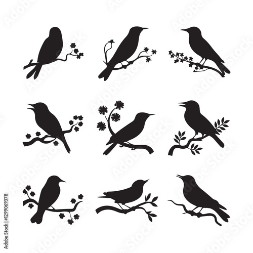 © logodesign11, Obraz premium Vector birds silhouettes Sparrows Silhouette Pigeons Flying Silhouettes 1 brid silhouette