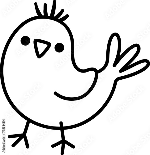Fototapeta premium Vector black and white cartoon bird pecking seeds. Christmas animal clipart....