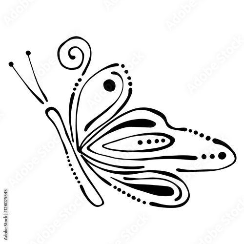 © Valentain Jevee, Fototapeta premium Vector black and white illustration of insect. Butterfly isolated on the white background. Hand drawn contour lines and strokes. Decorative logo, icon, sign, tattoo. Graphic vector illustration.