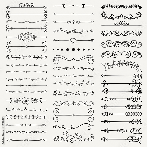 © Vector Queen, Obraz premium Vector Black Hand Drawn Dividers, Arrows, Swirls
