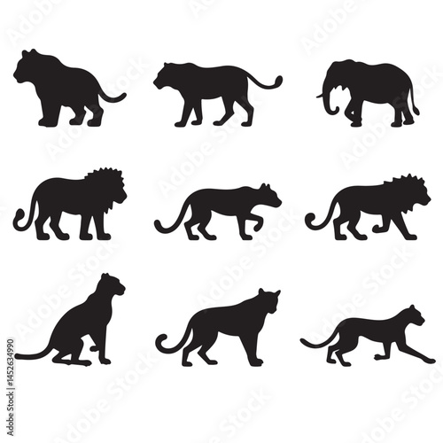 © nahidsultana, Obraz premium vector black silhouette set of wild and farm animals collection