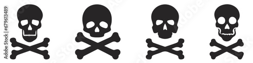 Fototapeta premium Vector Black Skull Icon Set Isolated. Skulls Collection with Outline in Front...