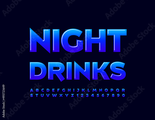Obraz premium Vector blue Emblem Night Drink. Trendy bright Font. Glossy Alphabet Leters...