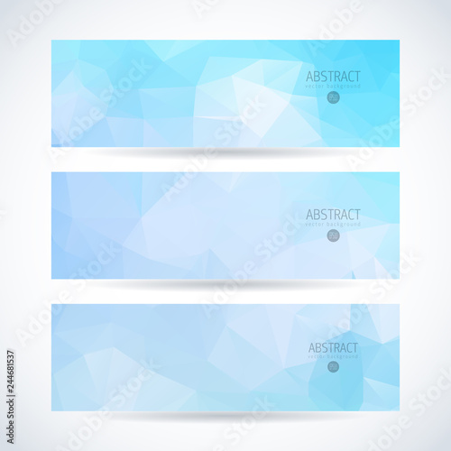 Fototapeta premium Vector blue ice design template set of banner, header for website with triangle geometric background