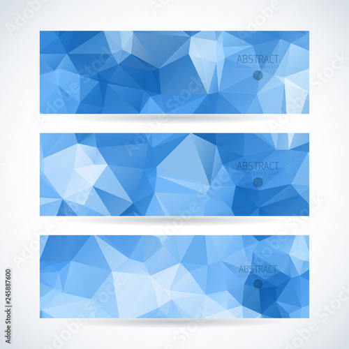 Fototapeta premium Vector blue ice design template set of banner, header for website with triangle geometric background