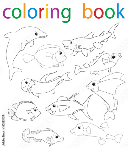 © zolotons, Obraz premium Vector, book coloring cartoon fish collection character