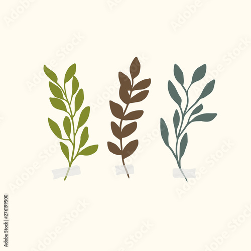© smotrivnebo, Fototapeta premium Vector botanic illustrations. Botanical clipart. Set of Green branches. Floral Herb Design elements.