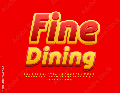 Fototapeta premium Vector bright advertisement Fine Dining. Creative Yellow and Red Font....