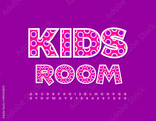 © Popskraft, Fototapeta premium Vector bright emblem Kids Room. Playful pattern Font. Cute set of Alphabet Letters and Numbers
