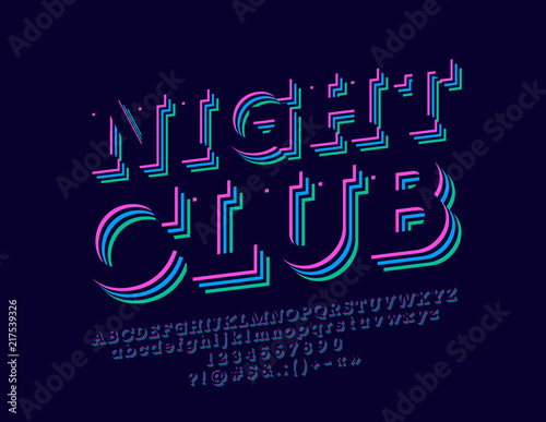 © Popskraft, Naklejka premium Vector Bright Sign Night Club. Modern Bright Font.