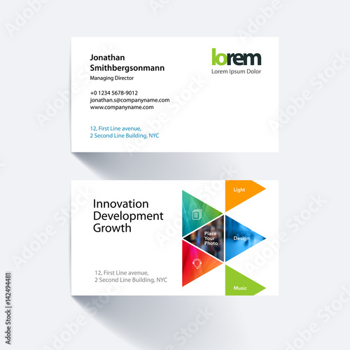© Diamond Graphics, Fototapeta premium Vector business card template with colourful triangular shapes f