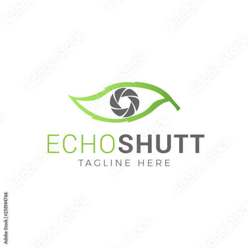 © Astart, Fototapeta premium Vector camera shutter and leaf logo combination. Unique photo and organic logotype design template. - Vector