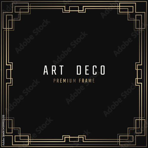 © Serge Zimniy, Fototapeta premium Vector card. Art Deco style. Dark golden geometric frame on black background.