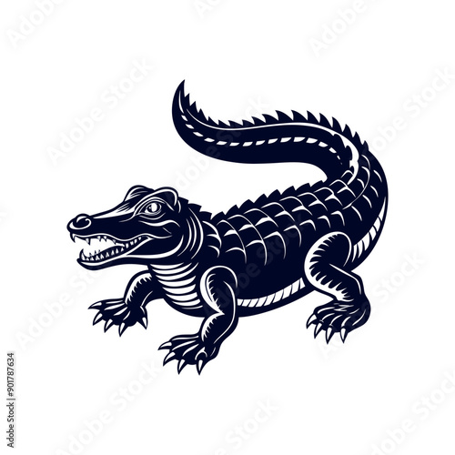 © Roman, Fototapeta premium Vector cartoon Alligator Crocodile silhouettes Clipart illustration On a White Background