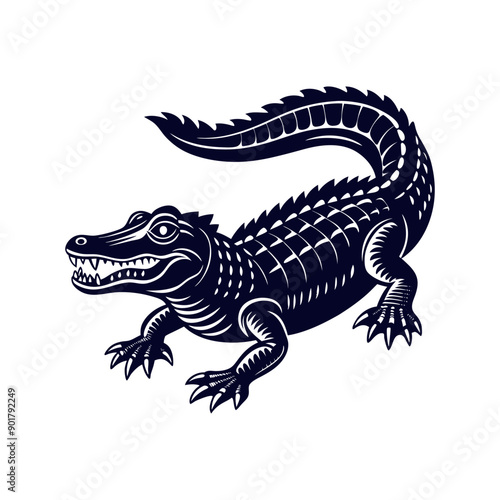 © Roman, Fototapeta premium Vector cartoon Alligator Crocodile silhouettes Clipart illustration On a White Background