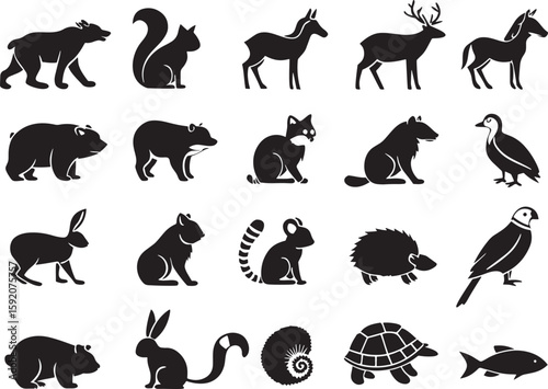 © Uhartist35, Fototapeta premium Vector cartoon animals icon set with white background