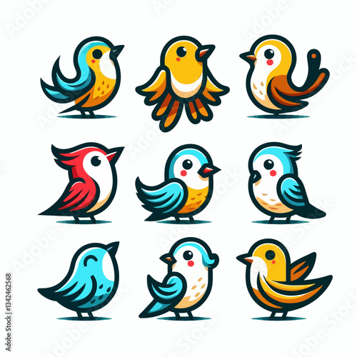 © Illia Hryhoriev, Naklejka premium Vector cartoon birds logo emblem on a white background, EPS10 illustration on a transparent isolated clipart, perfect for design and branding.