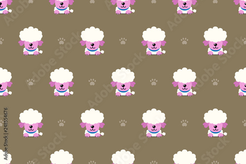 Fototapeta premium Vector cartoon character poodle dog seamless pattern background for design.