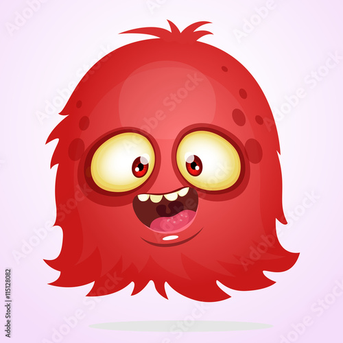 © drawkman, Fototapeta premium Vector cartoon Halloween monster. Red furry flying monster with big eyes. Red hairy monster vector icon. Red fluffy funny ghost game character. Cute red yeti character with gradients isolated on white