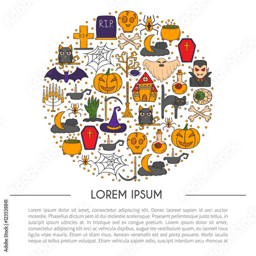 © petite_lili, Naklejka premium Vector cartoon hand drawn Halloween background