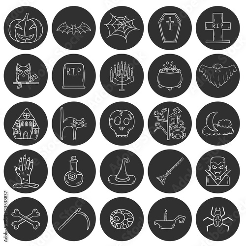 © petite_lili, Naklejka premium Vector cartoon hand drawn Halloween icons