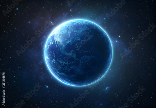 © Asif, Obraz premium Vector cartoon illustration of flat blue planet surface with dark background