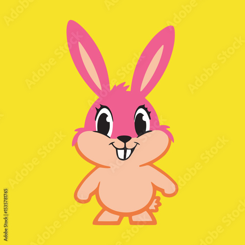 © VectorVibe, Obraz premium Vector cartoon of a cute pink and brown Rabbit.