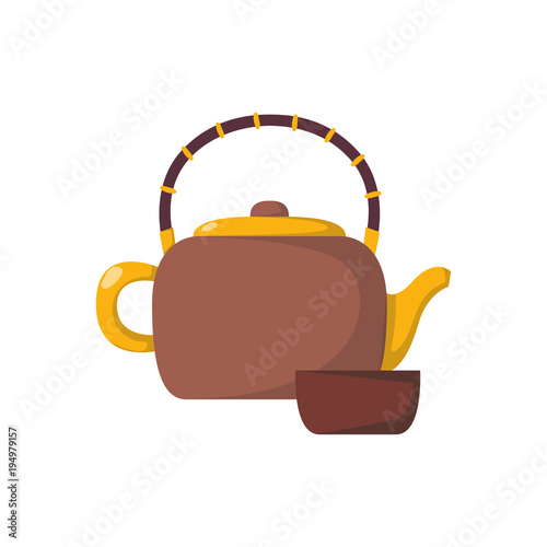 © petite_lili, Obraz premium Vector cartoon teapot with cup