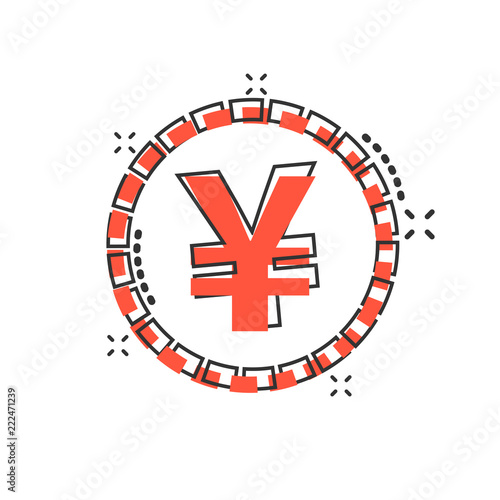 © Lysenko.A, Obraz premium Vector cartoon yen, yuan money currency icon in comic style. Yen coin concept illustration pictogram. Asia money business splash effect concept.