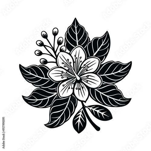 © Nezamur, Fototapeta premium Vector Cassia Fistula. Thailand's National Flower in Icon Style