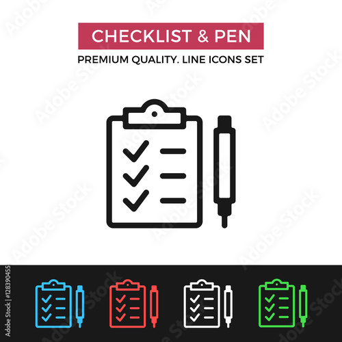 © Jane Kelly, Naklejka premium Vector checklist and pen icon. Thin line icon