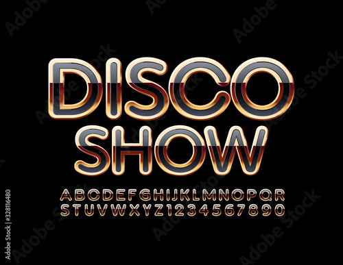 Obraz premium Vector chic Emblem Disco Show. Luxury stylish Font. Unique Alphabet Letters...
