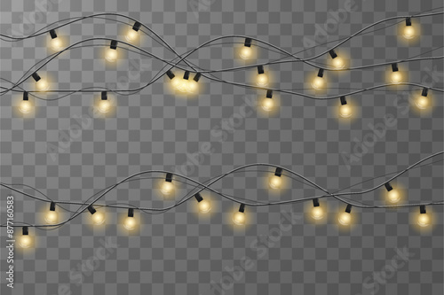 Obraz premium Vector Christmas lights. Christmas garland PNG. Christmas light PNG....