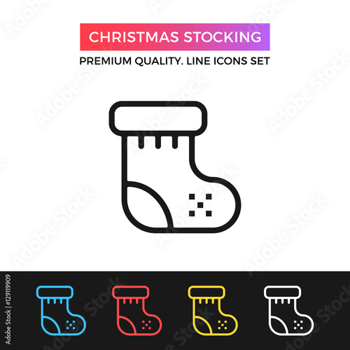 © Jane Kelly, Obraz premium Vector Christmas stocking icon. Thin line icon