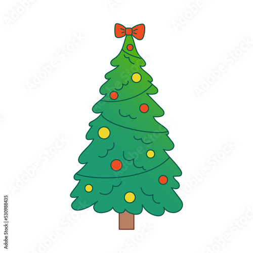 © Ulyana Mo, Fototapeta premium Vector christmas tree. Evergreen tree with decorations. Fir tree for New Year with bow. Gradient.