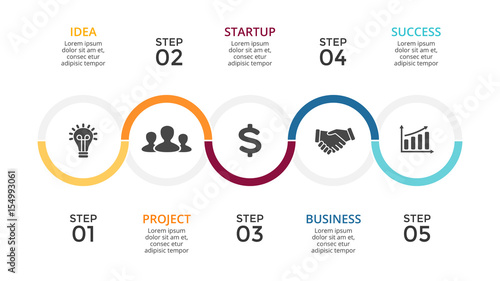 © theseamuss, Naklejka premium Vector circle arrows infographic, cycle diagram, graph, timeline presentation chart. Business concept with 5 options, parts, steps, processes. 16x9 slide template.