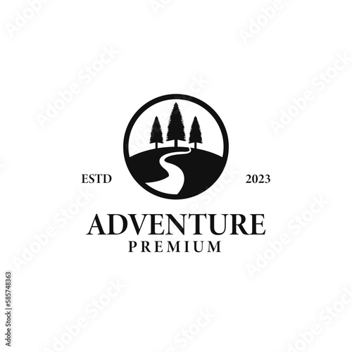 © Brandingasik, Obraz premium Vector circle tree and river logo design concept illustration idea