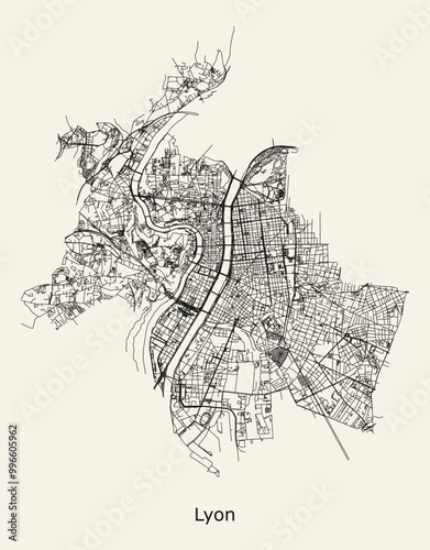 © Somar, Fototapeta premium Vector city road map of Lyon, France