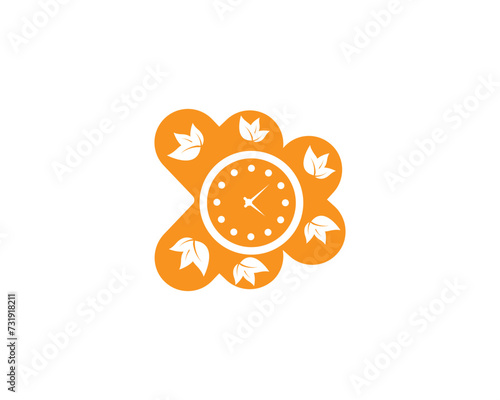 © CREATIVEDESIGNZONE, Fototapeta premium Vector clock and leaf logo combination. Time and eco symbol or icon. Unique express and organic logotype design template.