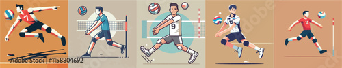 Fototapeta premium Vector collection of a volleyball player practicing hard