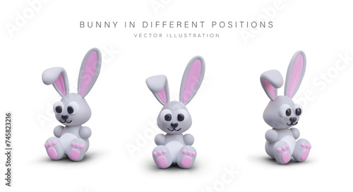 Obraz premium Vector colored bunny, view from different sides. Cute 3D Easter character