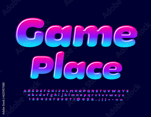 Obraz premium Vector colorful Emblem Game Place. Bright Bold Font. Modern Alphabet Letters...