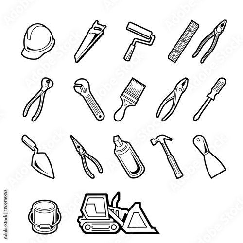 © Saiful, Obraz premium Vector construction tools icon set. Vector Illustration.. Collection set